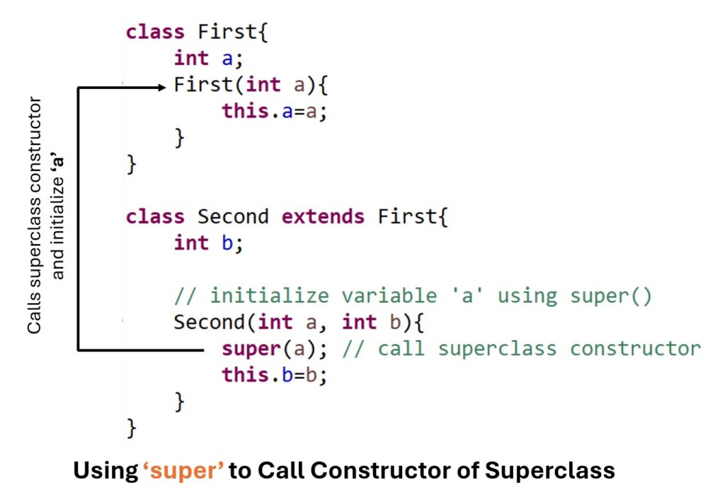 Let’s understand the use of super() to call the superclass constructor through the below figure.
