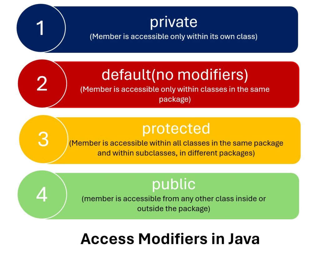 The four access modifiers in Java are: